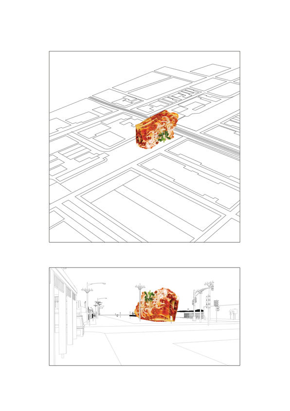 Using the site of the ‘Park Street café’ on Nicholson St, Carlton North, we were tasked to design a hospitality venue within a 500 square-metre area. Our building proposals were developed inline with a meal of our choice, channelling the line “made in Australia from local and imported ingredients”. Dialect urged us to interrogate our selected meal, utilising the ‘local’ and ‘imported’ ideas we had investigated. Questions were soon realised, leading us to examine what is our meal as a dish? Or, is our building the dish? What does our meal say? The cultural aspects of our projects were of primary concern; thus any practical facets came secondary during the design process.
